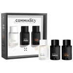 Commodity expande cada fragancia en tres espacios olfativos: un aroma suave y personal para la piel, un aroma expresivo equilibrado y un aroma potente y audaz. Este set contiene tres fragancias en cada espacio olfativo.