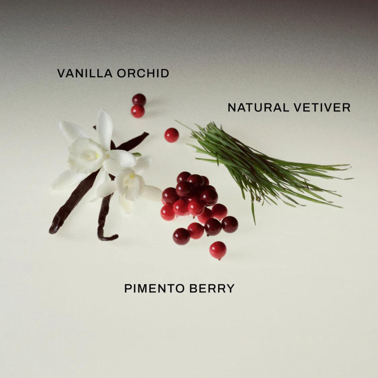 Notas de fondo: Vetiver natural, resina de olíbano, aceite esencial de cedro de Virginia